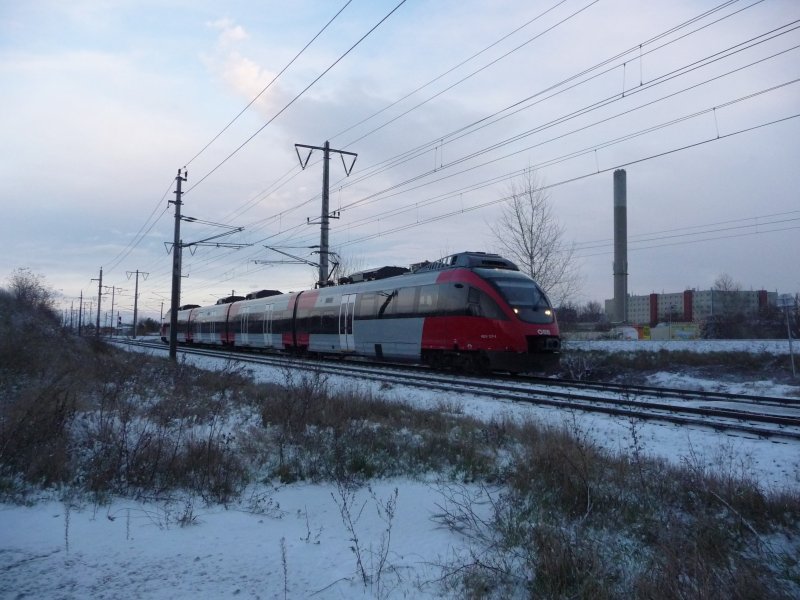 Nachträglich noch eine Winteraufnahme von 22.11.08: Die 4024 137-4 befindet sich zwischen den Bahnhaltestellen Wien Leopoldau und Wien Siemensstraße.