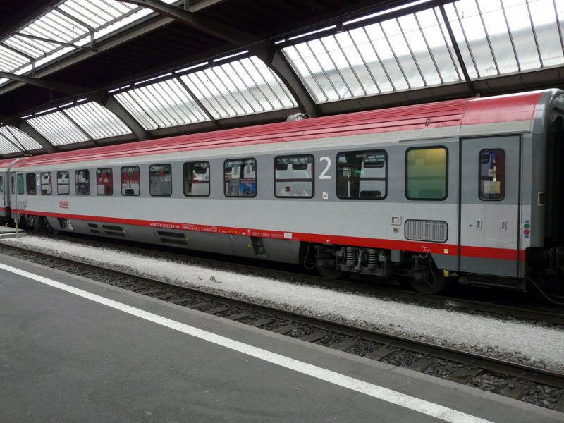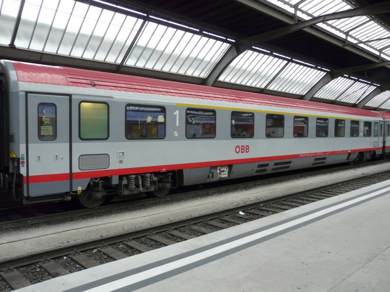 ÖBB  - Personenwagen 1 Kl. mit Gepäckabteil  ADbmpsz 73 81 81-91 020-4 im Hauptbahnhof von Zürich am 06.05.2009