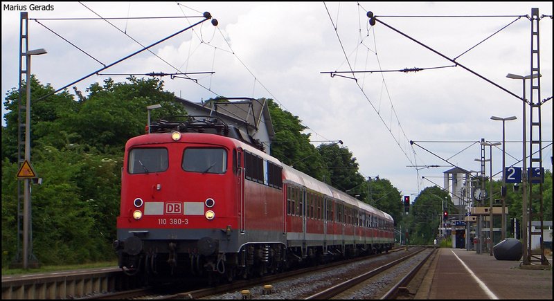 110 380 mit dem RE11596 nach Aachen im Bahnhof Geilenkirchen 10.6.2009