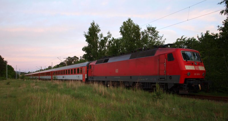 120 108-6 steht am Abend des 30.05.09 mit dem Leerpark des EC 378 aus Wien Südbahnhof Bstg. 1-9 kalt auf dem einzigen genutzten Abstellgleis im Ostseebad Binz und genießt dort ihre Nachtruhe, bevor es Morgenfrüh als EC 379 Brno hl.n. geht.