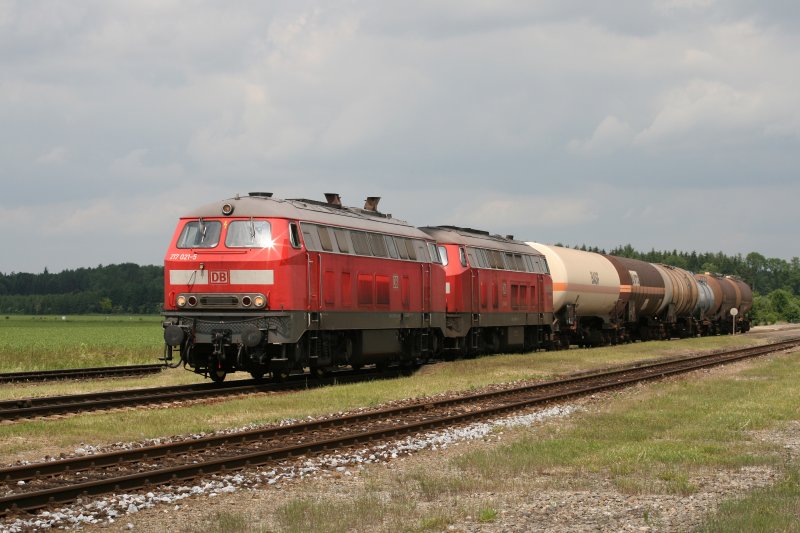 225 002 und 217 018 mit dem Müllzug 56713 am 04.06.2009 in Tüßling.