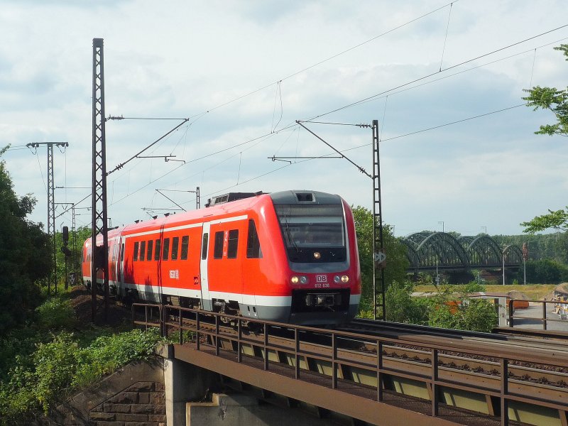 612 636 als RE 3315 Saarbrücken Hbf - Frankfurt(Main)Hbf kurz hinter der Mainbrücke zwischen Mainz-Bischofsheim und dem Abzw. Kostheim. 03.06.09