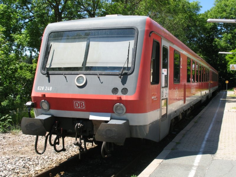 Da kommt man vom Getränkemarkt, will in den Zug einsteigen und dann das! Die Windschutzscheibenrollos sind unten, der Zug verrammelt und kein DB-Personal vor Ort! Am Samstag, 13.06.2009, war das so, denn da wurde zwischen Bad Steben und Selbitz gebaut, so dass die Züge nur bis Selbitz fuhren.