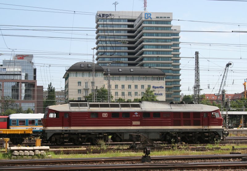 232 088 der EFW fährt mit einem Güterzug in München Hbf ein. Aufgenommen am 13.06.2009.