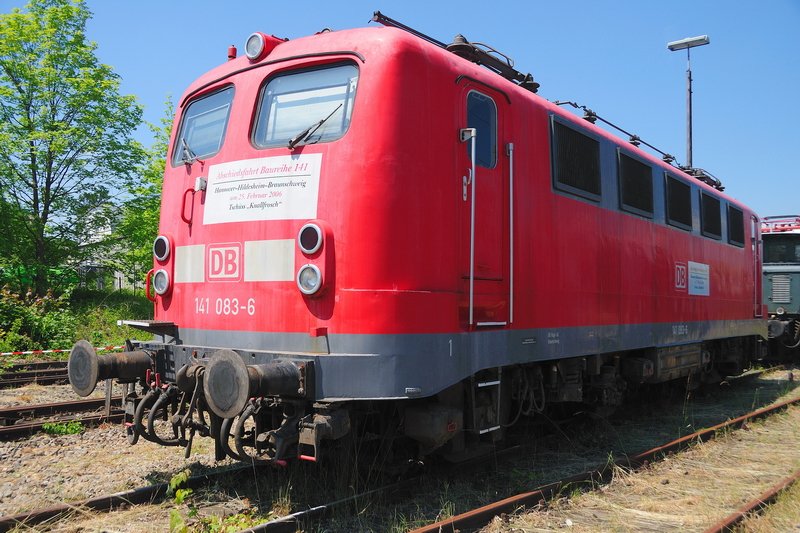 Fahrzeugparade in Nördlingen zum 40-Jährigen: Der letzte  Knallfrosch  bzw. 141 083-6 war die Ehre zu Teil, den letzten Zug zu befördern, welcher mit dieser Baureihe bespannt wurde. (13.06.2009)