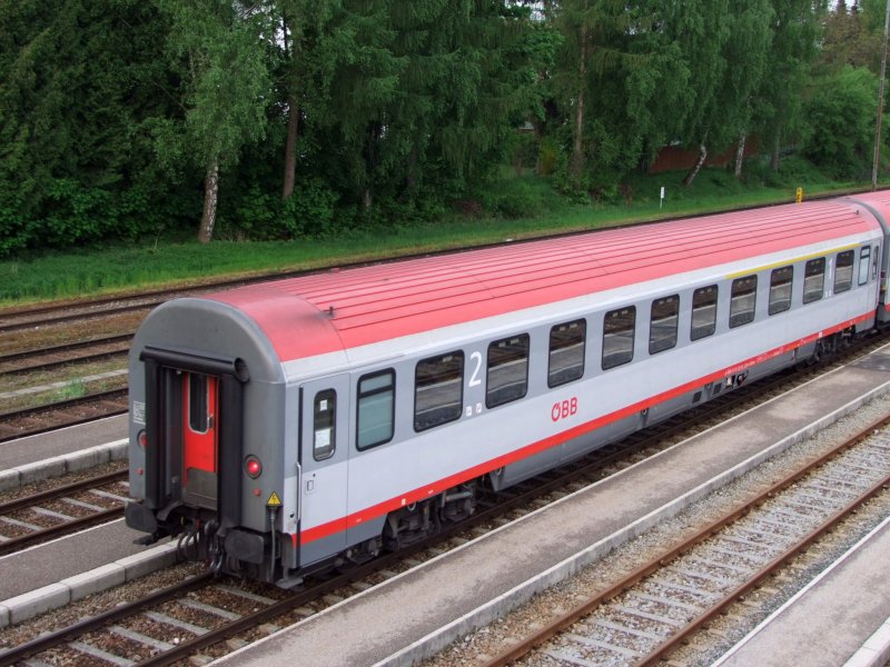 Jetzt war ich auch mal an der neuen Fotostelle an der Westbahn. Kann mich aber noch nicht so richtig für einen Bildausschnitt entscheiden. Mir gefallen irgendwie alle drei Versionen. 1116.033 (Telekom) mit dem OEC 642. Eichgraben, 21.6.2009.
