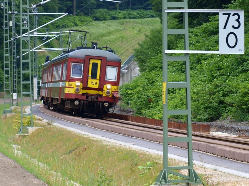 Ein Belgischer BR 62 Triebzug kommt aus dem Aachener Buschtunnel und fährt gleich die Südrampe zum Hauptbahnhof runter.