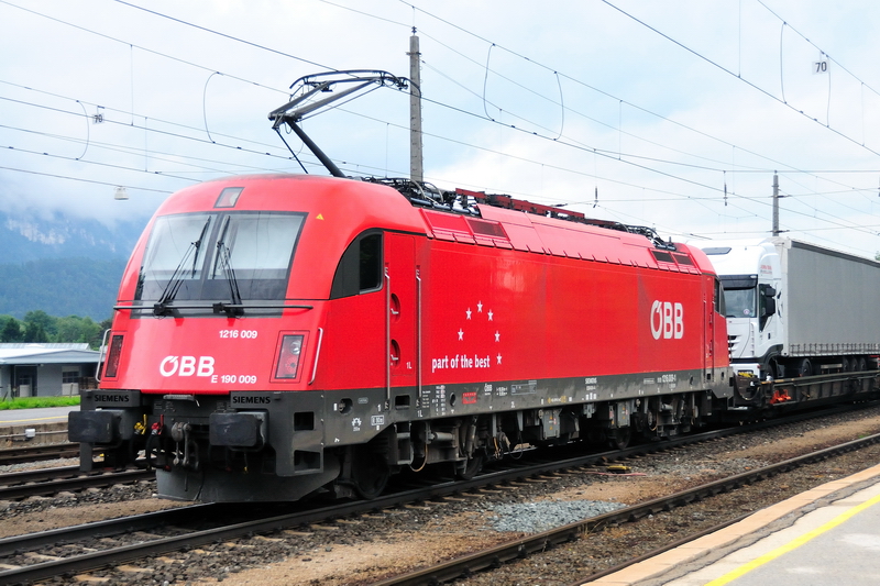 1116 137-6, mit EC 87  Tiepolo  am Haken, eilt Innsbruck entgegen. Aufgenommen beim Bahnbilder-Treffen in Durchfahrt Brixlegg, 20. Juni 2009.