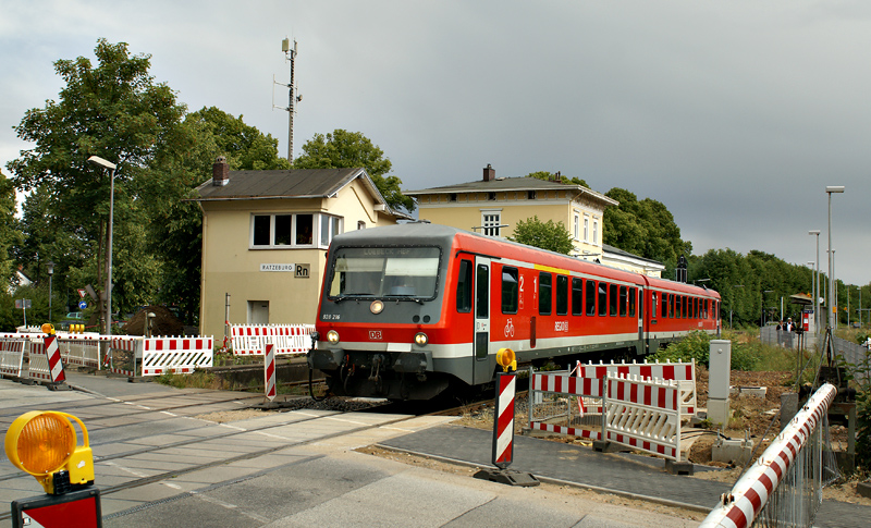 628 216 passiert am 21.06.2009 als RB nach Lübeck Hbf das Ratzeburger Stellwerk  RN , welches nunmehr nur noch als Schrankposten dient.
