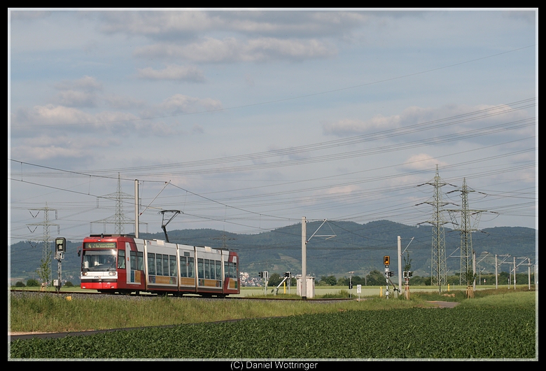 Der GT6N 5613 zwischen Heddesheim und Wallstadt an der Müllerschen Gutsrampe, 31. April 2009.