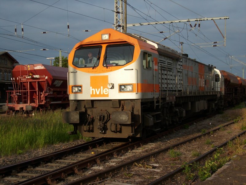 Einfahrt in den Bahnhof von Dahlenburg (KBS 112)am 21.06.2009, fotografiert durch die geschlossene Führerstandstür.