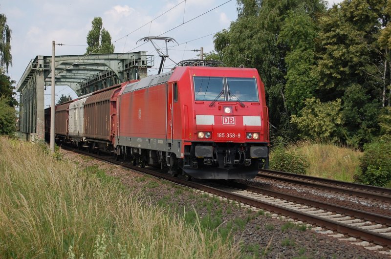 185 358-9 am 30.06.2009 nach Überquerung des Mittellandkanals bei Peine