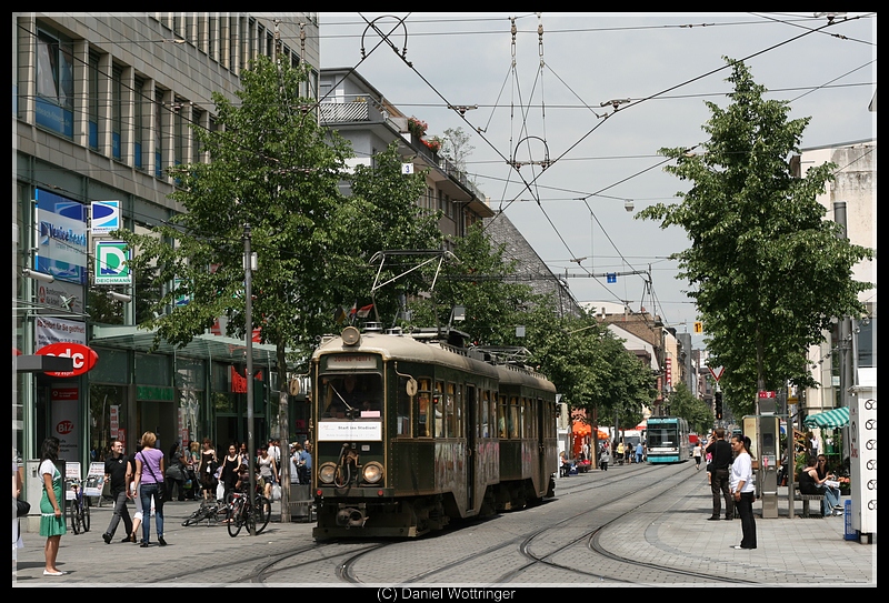 Der Halbzug 45/56 war am 18. Juni 2009 für irgendeine Hochschule Mannheims als mobile Informationsveranstaltung unterwegs. Die Aufnahme entstand am Paradeplatz.
