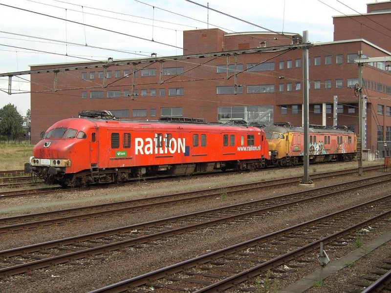 Die Nasen der 3027 und 3029 auf Bahnhof Amersfoort am 31-7-2008. Das Unterschied zwischen die alte Motorpost-Farben (Links) und die Railion-Farben is gut zu sehen.