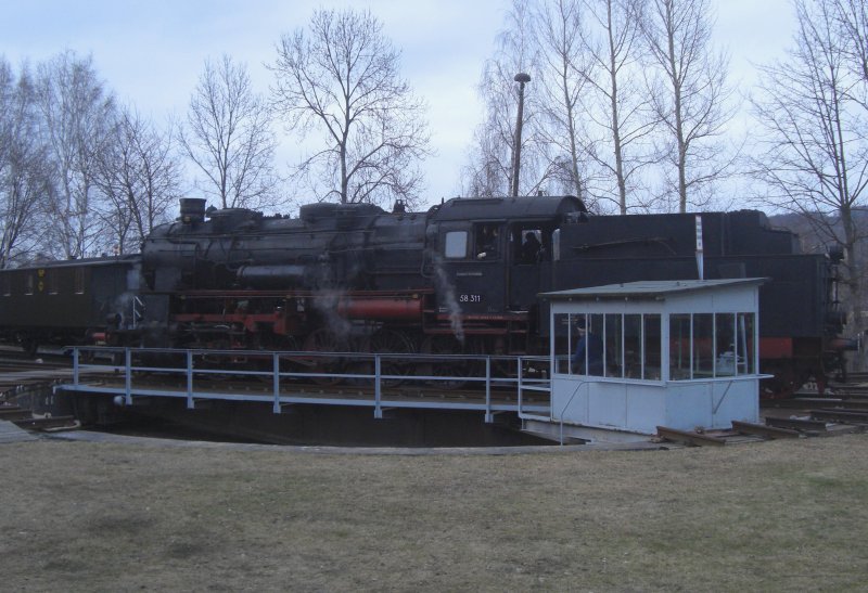 58 311 steht 14.03.09 auf der Drehscheibe des VSE Schwarzenberg. (Bildautor: Christian Paul)