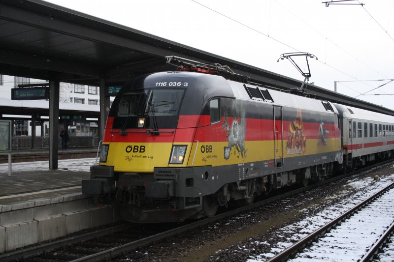 Den IC 2082 "Königssee" bespannte am 24.03.2009 die 1116 036 "Deutschland" (Aufnahme München Ost).