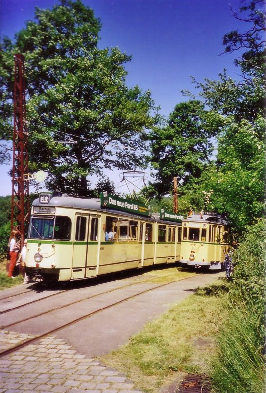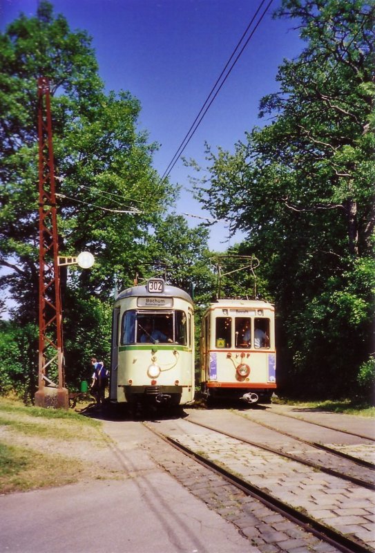 Die beiden Triebwagen 275 und 105 in der Station Greuel. Pfingsten 2009.