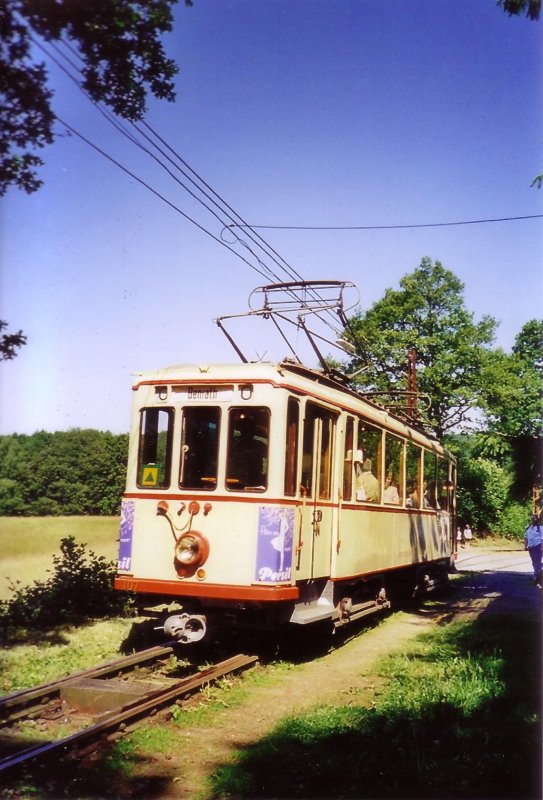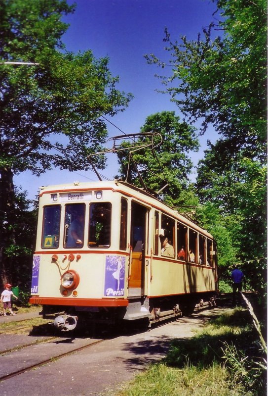 Meterspur-Triebwagen 107, ehemals der Aachener Straßenbahn und Energieversorungs AG Rheinische Bahngesellschaft Düsseldorf,