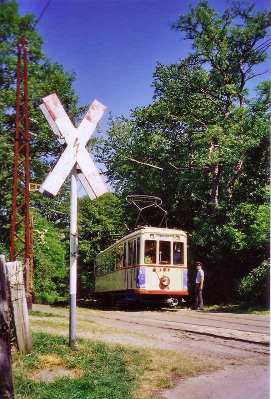 Die beiden Triebwagen 275 und 107 in der Station Greuel, nahe dem Naturfreundehaus. Pfingsten 2009.