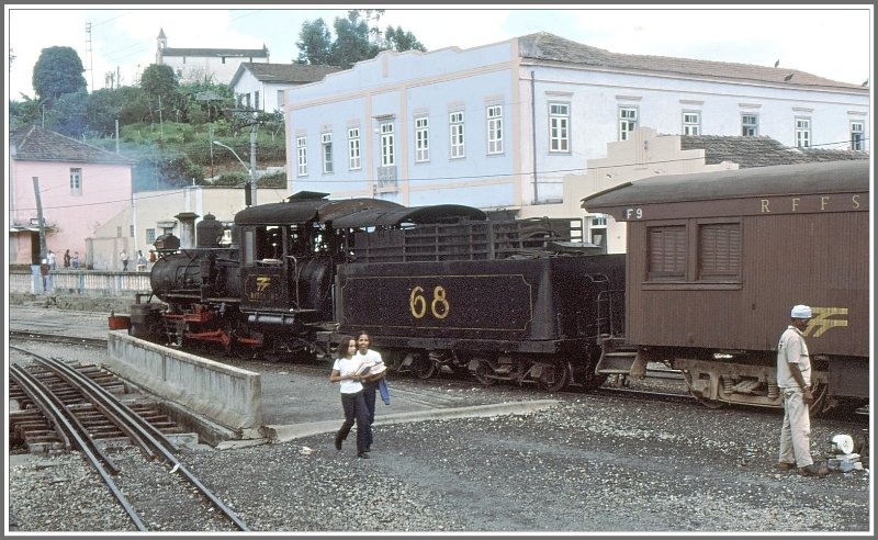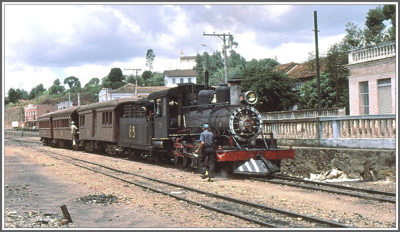 Die drei Wagen werden in einem aufwendigen Manöver so verschoben, dass sie für die Rückfahrt ins 100km entfernte Sao Joa del Rei (Dauer ca. 6 Stunden) in umgekehrter Reihenfolge dastehen. (Archiv 03/1979)