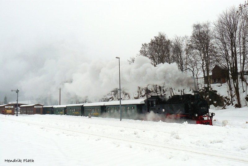 99 794 dampft aus dem Bahnhof Cranzahl. Datum: 28.02.2009