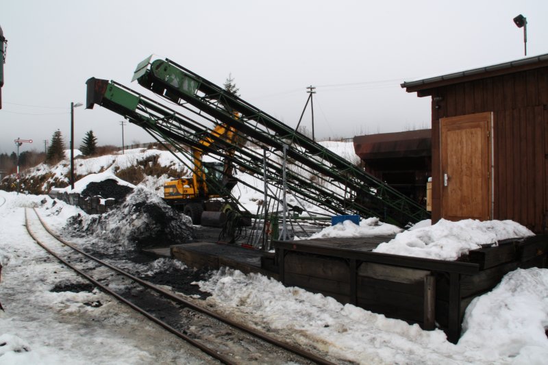 Die Bekohlung der Fichtelbergbahn am 28.02.09 im Bahnhof Cranzahl.