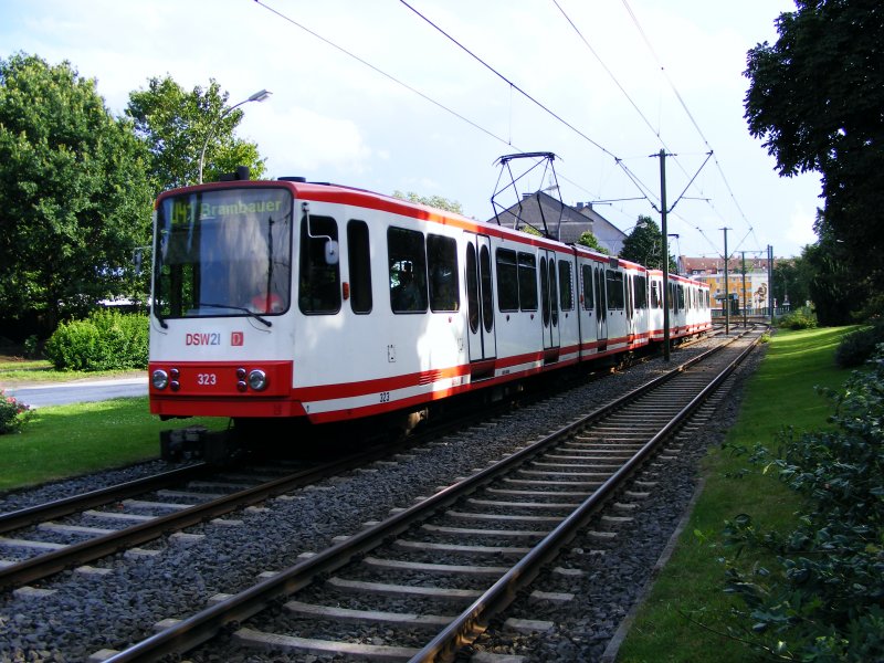 Dreiteiliger Stadtbahnwagen B80 an der Haltestelle Kohlgartenstraße in Dortmund als Linie U 47 nach Aplerbeck.