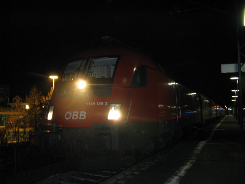 1116 159-3 mit EC 112 von Klagenfurt Hbf nach Frankfurt(Main)Hbf.Am 07.03.09 beim Halt in Bensheim.