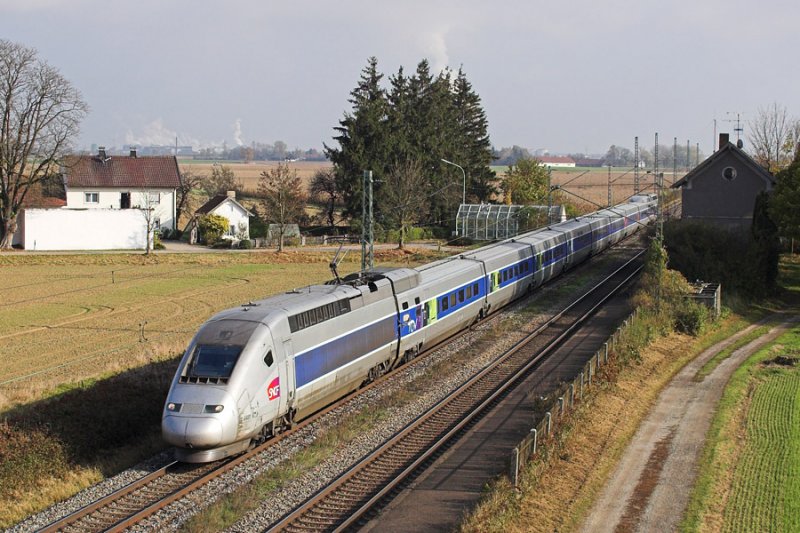 Der TGY POS absolvierte am 24.10.2008 Testfahrten in Ostbayern. Hier wurde er am ehemaligen Bahnhof Stephansposching aufgenommen.
