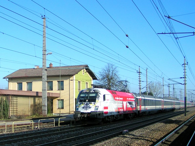 1216 233 durchfährt mit OIC548"Stiegl Express" Marchtrenk; 090108