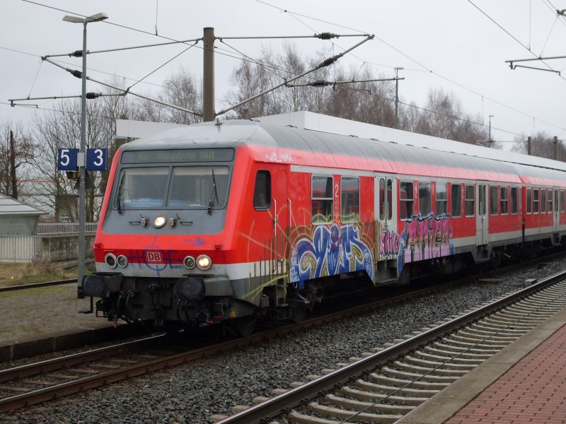 Ein Wittenberger mit einem Tattoo am RE von Wolfsburg nach Hannover in Gifhorn
