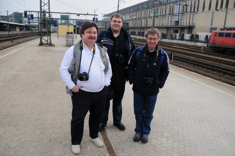 Stefan Kilian, Tobias "Schumi" Schuminetz und Stefan Wohlfahrt vor der Kulisse des Bahnhofkomplexes von Regensburg. (14.03.09)