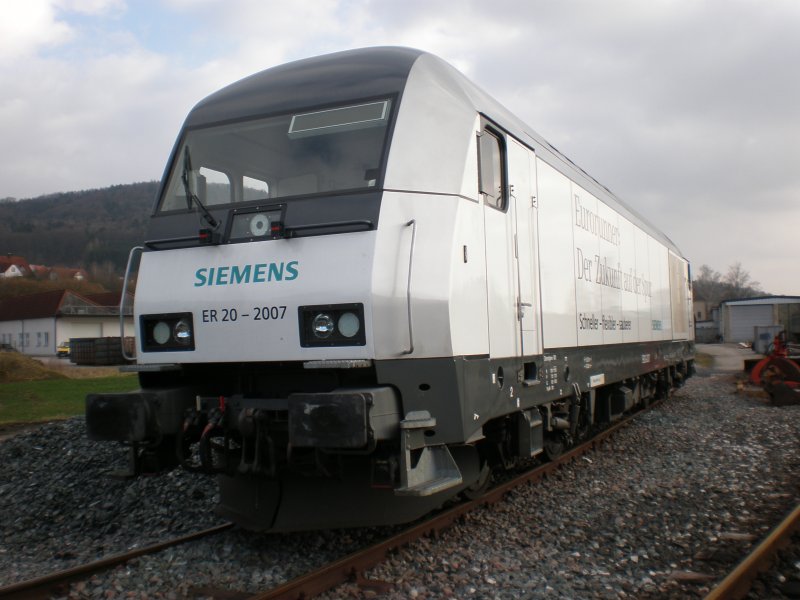 Der Eurorunner ER20 von Siemens an seinem Standplatz für die nächsten paar Wochen im Ebermannstädter Bahnhof