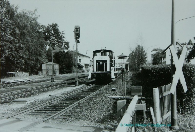 Bahnhof Mitterteich am 19.09.1984: Es war richtig, zum fotografieren anzuhalten, als ich eine Lok gesehen hatte. Heute liegen hier keine Schienen mehr.... 260241 fährt auf den BÜ zu. Im Jahr vorher hatte Sie noch beim Abbau der Höllentalbahn geholfen... Wieder ein Motiv aus meiner Sammlung (Nr. 478/2/4).