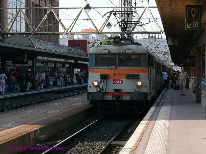 BB9618 mit TER-Regionalzug im Bahnhof Lyon-Part-Dieu.