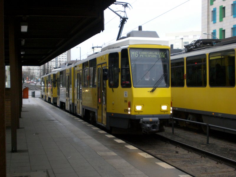 Berlin: Straßenbahnlinie M6 nach Friedrichshain Landsberger Allee/Petersburger Straße am S-Bahnhof Landsberger Allee.
