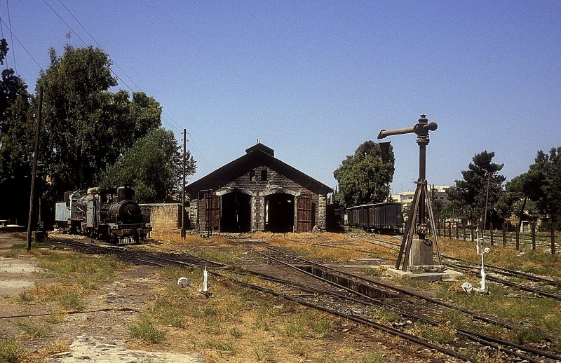 Weit ausladender Wasserkran im Museums-BW Staßfurt. Im Hintergrund am Lokschuppen 44 1182-3.