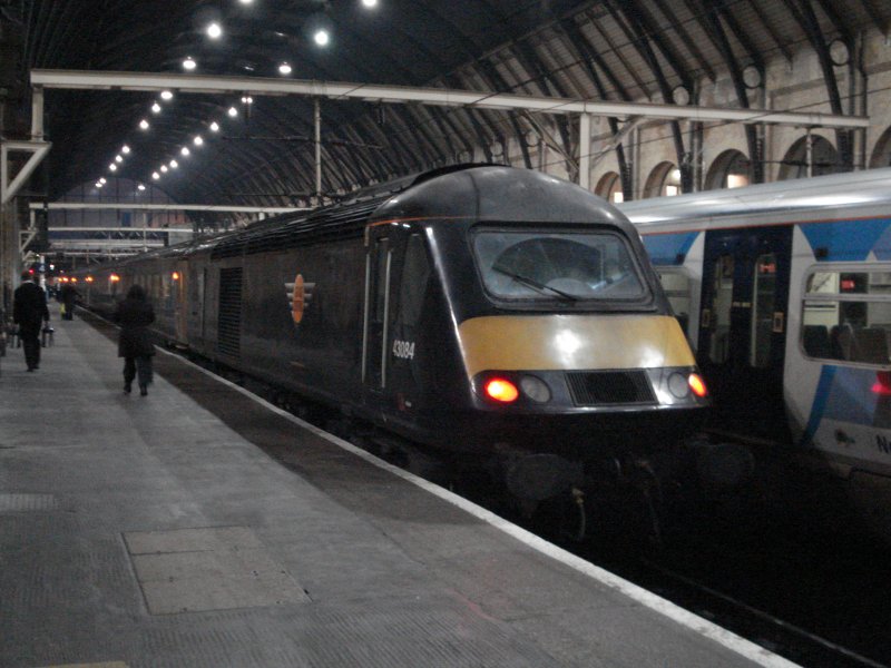 Ein Class 43-Triebzug (ehemals HST 125) der Great Central Railway wartet am Abend des 14.02.09 darauf, sich auf die East Coast Main Line in Richtung Sunderland zu begeben.