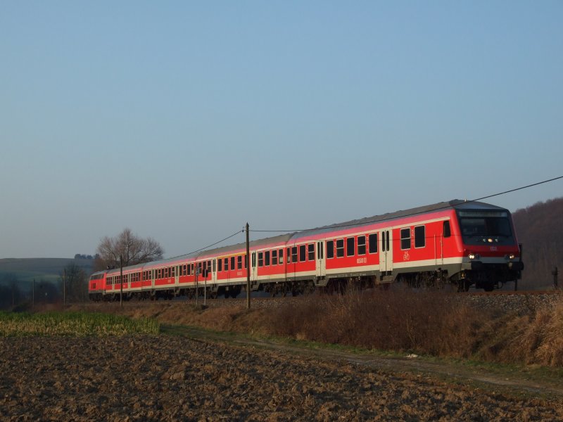 Regionalexpress nach Heilbronn am Abend des 29.12.2008 kurz vor dem Bahnhof Hoffenheim