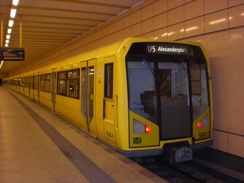 Berlin: Die U5 nach S+U Bahnhof Alexanderplatz im U-Bahnhof Weberwiese.