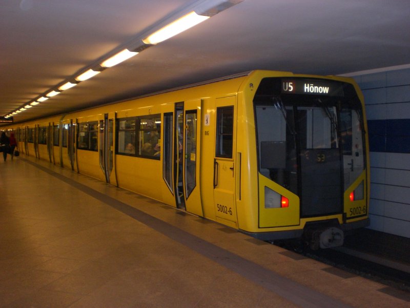 Berlin: Die U5 nach U-Bahnhof Hönow im U-Bahnhof Frankfurter Tor.