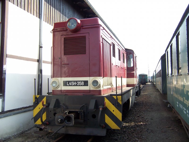 Dies ist ein Neuzugang bei der Lösnitzgrundbahn, diese Diesellok stammt aus Rumänien, und ist eine von nur drei Vertretern in Deutschland. Sie ist als Ersatzlok für den Personenverkehr vorgesehen.