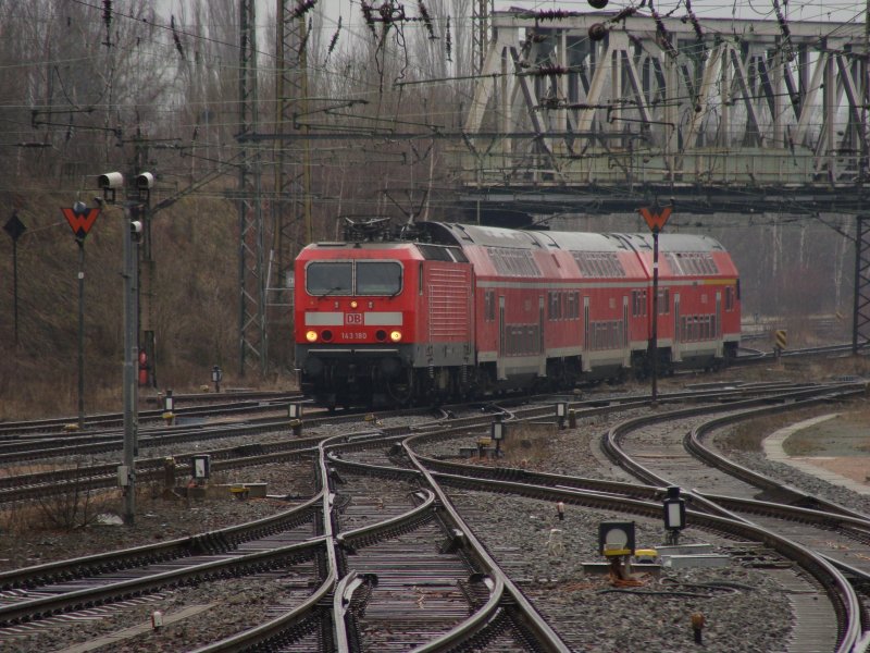 143 180 (ohne Kontrollziffer) mit Regionalexpress aus Leipzig kurz vor Zwickau Hbf am 19.03.2009