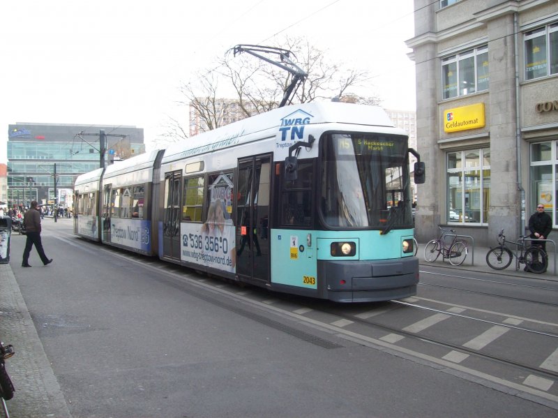M6 Kamm vom Alexanderplatz/Gontardstraße und fahrt in Richtung Hackescher Markt Am 21.03.2009