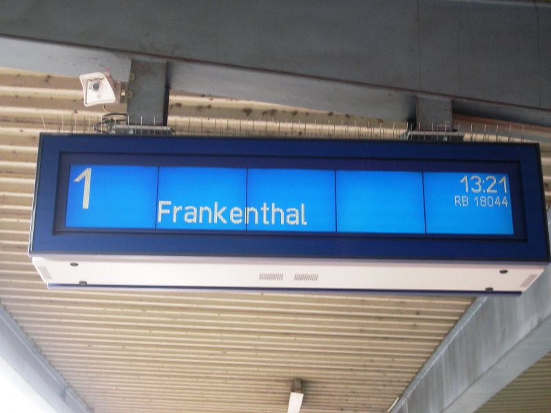Zugzielanzeige RB 18044 (Mannheim - Mainz). Wegen Bauarbeiten verkehrte dieser Zug als RB 92643 und fuhr bis Frankenthal Hbf