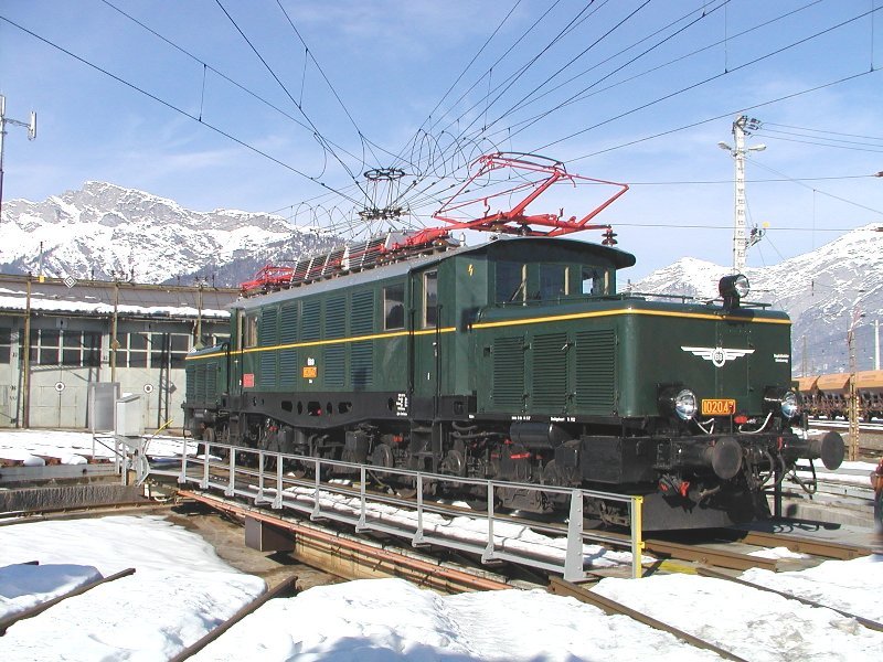 Wäre die Computernummer nicht, könnte das Bild auch älter sein: 1020 027-7 Anfang der 90er auf der Drehscheibe des Bw Innsbruck.