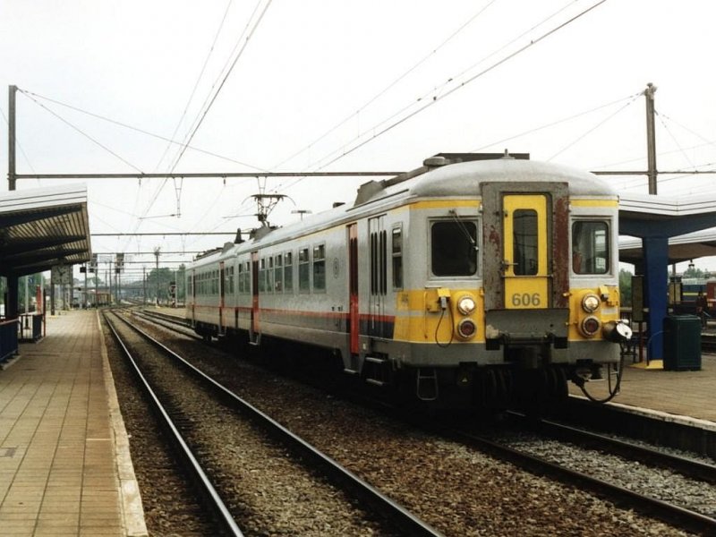 606 mit L 4484 La Louvière Sud-Charleroi Sud auf Bahnhof La Louvière Sud am 19-5-2001. Bild und scan: Date Jan de Vries.
