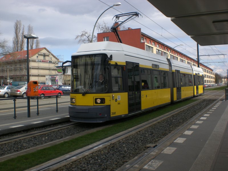 Berlin: Straßenbahnlinie 27 nach Weißensee Pasedagplatz an der Haltestelle Weißensee Buschallee.