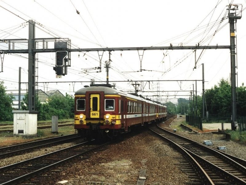 661 und 201 mit IC 1646 Schaarbeek-Moeskroen auf Bahnhof Enghien am 19-5-2001. Bild und scan: Date Jan de Vries.