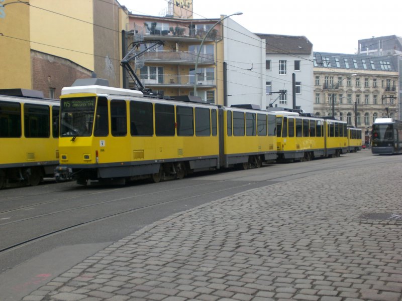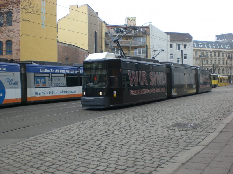 Berlin: Straßenbahnlinie M4 nach Hohenschönhausen Zingster Straße am S-Bahnhof Hackerscher Markt.
